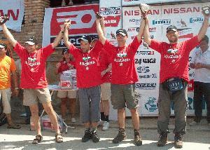 Национален шампионат по Оff-Road - втори кръг Генерален спонсор - Nissan България За втора поредна година у нас стартира уникалният преход с високо проходими машини 4х4 от връх Ком до черноморския бряг край нос Емине. На старта в софийския квартал Бояна застанаха 32 джипа изключително подготвени за преодоляване на най-тежки условия. Тази година в най-мъжкия спорт се забелязва все по силно присъствие и на жените. Освен пилота Вера Лагадова, като навигатори участват още 4 дами. Главният съдия на голямото състезание е Валя Панталеева от БФАС, която много внимателно е подбрала още три момичета, които ще съдийстват по време на надпреварата. В първия ден състезателите изминаха 130 км оф-роуд в софийския край на Стара планина. Първите започнаха да пристигат на палатковия лагер в екоферма " Чемерник" към 18 часа. В крайна сметка най-добро време от първия ден показа Александър Ковачев, миналогодишният национален шампион по оф-роуд. Само един джипа на Пламен Тенев ( Нисан) имаше проблеми и се наложи да се върне до София за ремонт, но подобни ситуации са нормални за такова тежки изпитание. В 22 часа обаче той пристигна също в палатковия лагер. Вечерта всички състезатели седнаха на обща трапеза подготвена от главния спонсор на шампионата - Нисан-България. Днес състезателите предстои да изминат общо 170 км, от които